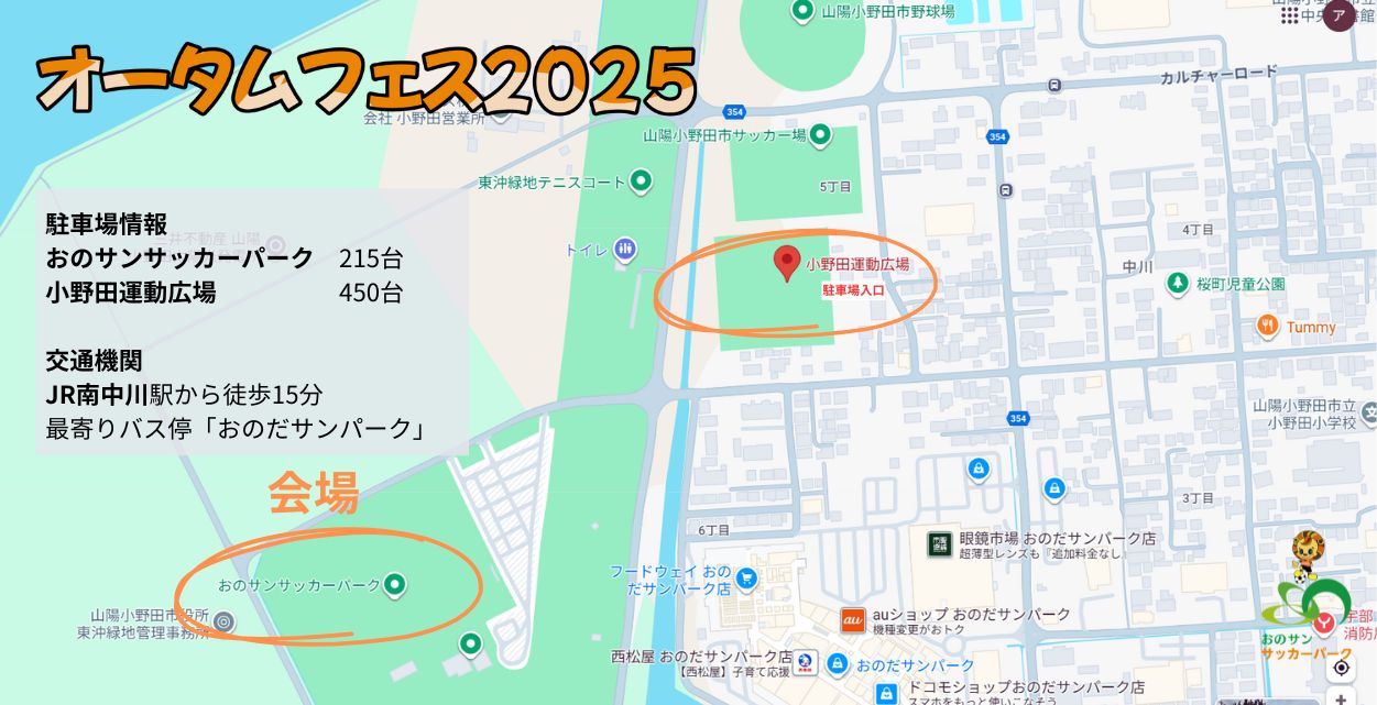 オータムフェス2025では臨時駐車場として【小野田運動広場】をご利用いただけます!
